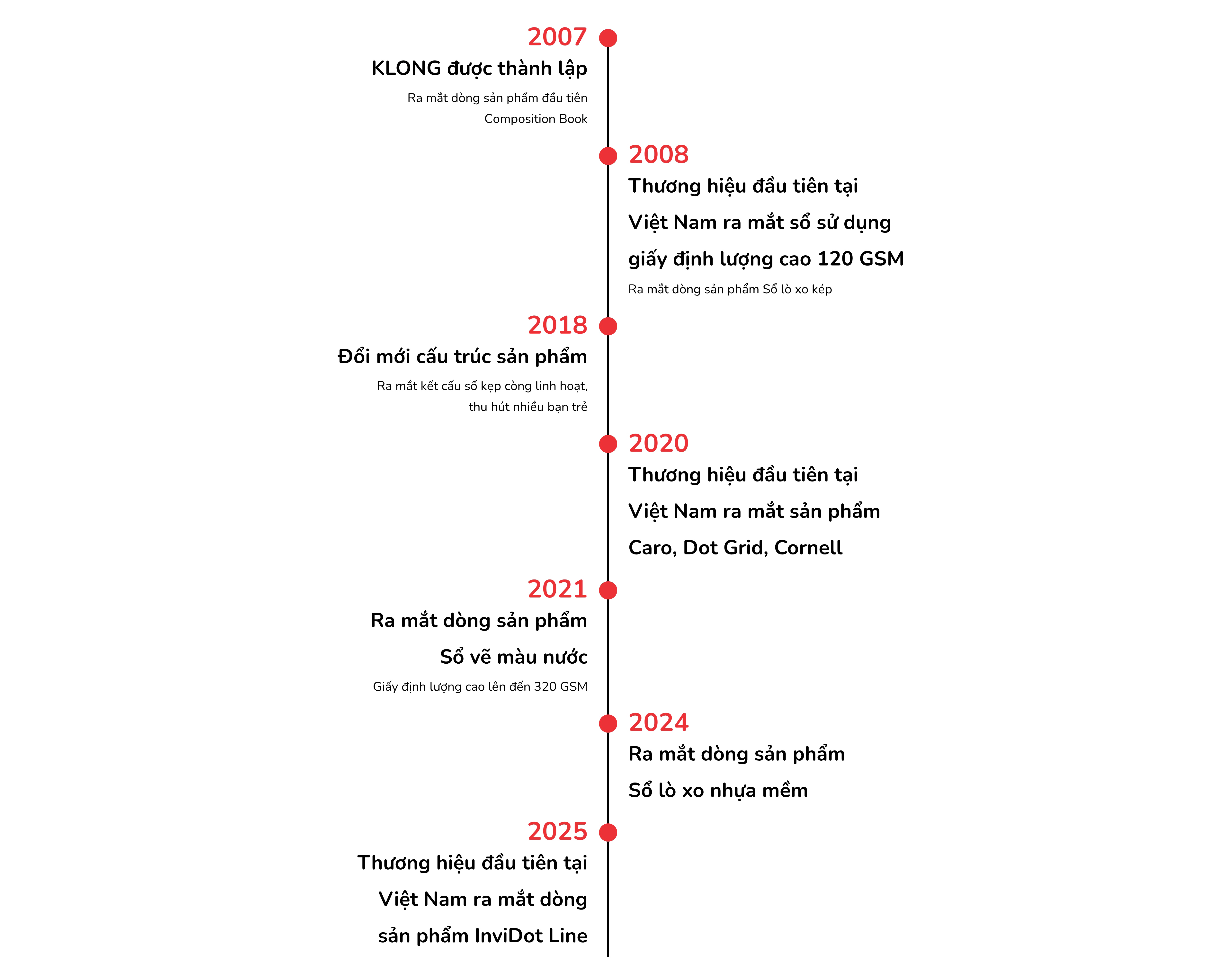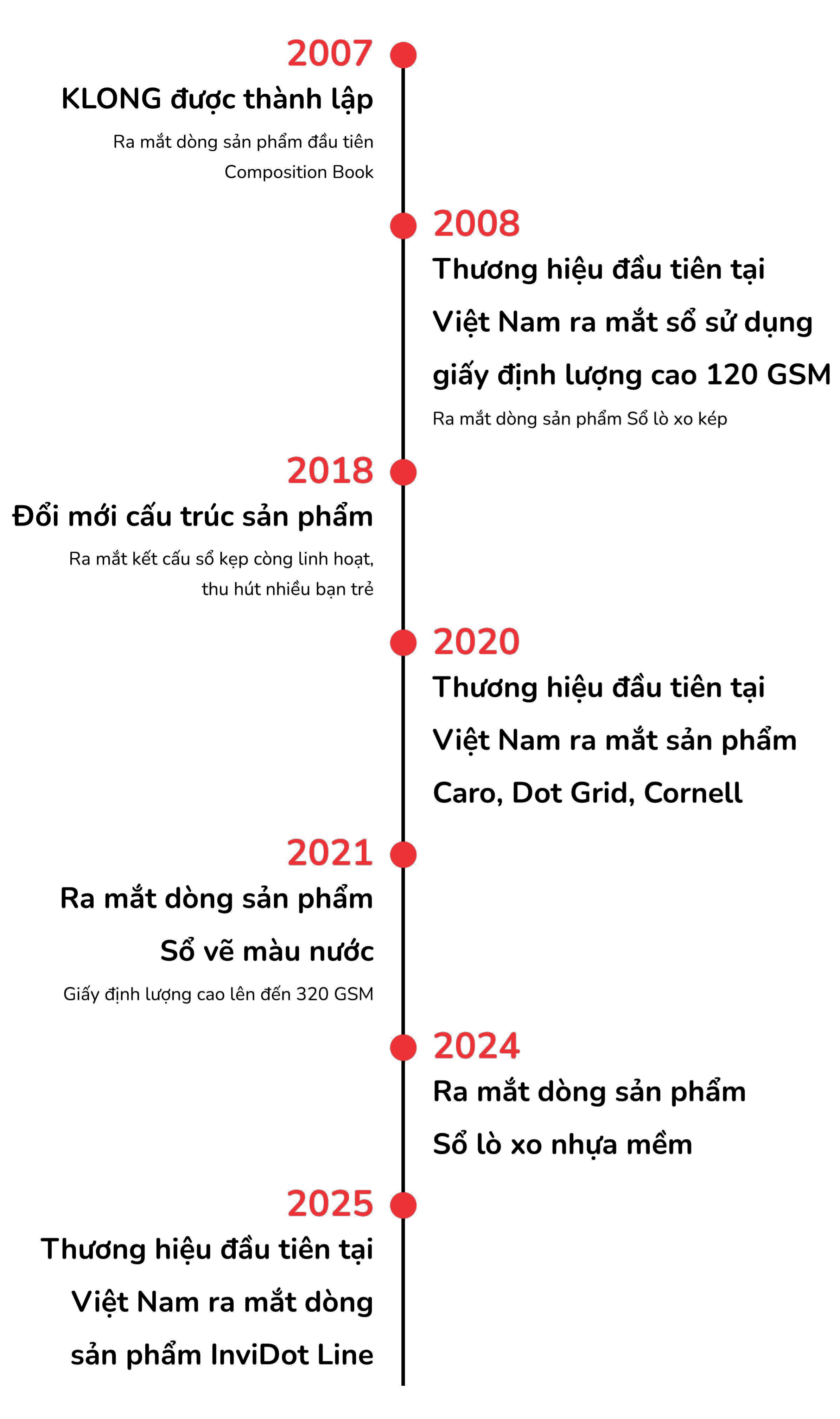 KLONG là công ty sản xuất và phân phối sổ, vở, đồ dùng văn phòng phẩm cho học sinh, sinh viên, người đi làm. KLONG nổi tiếng với các dòng sổ, vở sử dụng chất giấy định lượng cao lên đến 120 GSM chống thấm nhòe hiệu quả, cho phép các bạn học sinh thoải mái sáng tạo với các loại bút mực gốc nước và có được trải nghiệm viết mượt mà, êm tay.