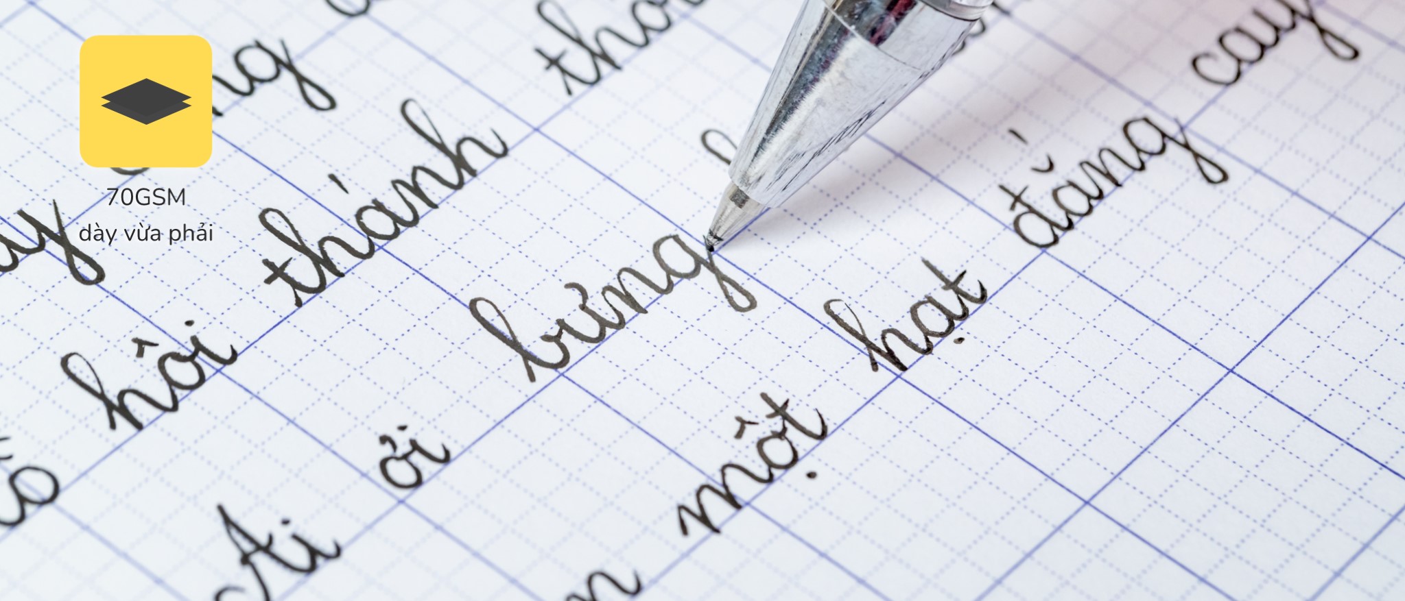 Định lượng giấy 70GSM tập trung vào trải nghiệm viết lách êm mượt, nhanh chóng, phù hợp với bút mực, bút bi và bút gel thông thường