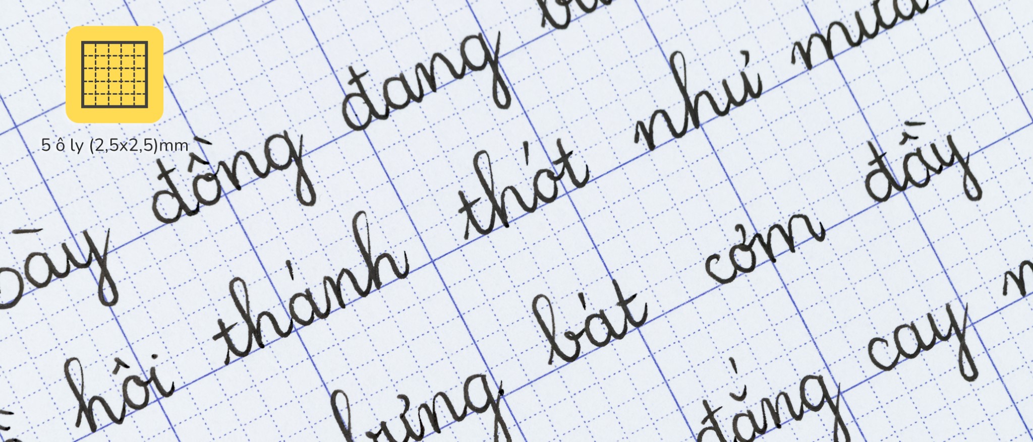 Ruột sổ 5 ô ly (2,5 x 2,5) mm nét mảnh, được in offset 5 ô ly 2 màu với độ đậm vừa phải giúp bạn dễ căn chỉnh khi cần kẻ bảng, vẽ hình, hỗ trợ bạn trình bày bài ghi theo nhiều layout đa dạng.