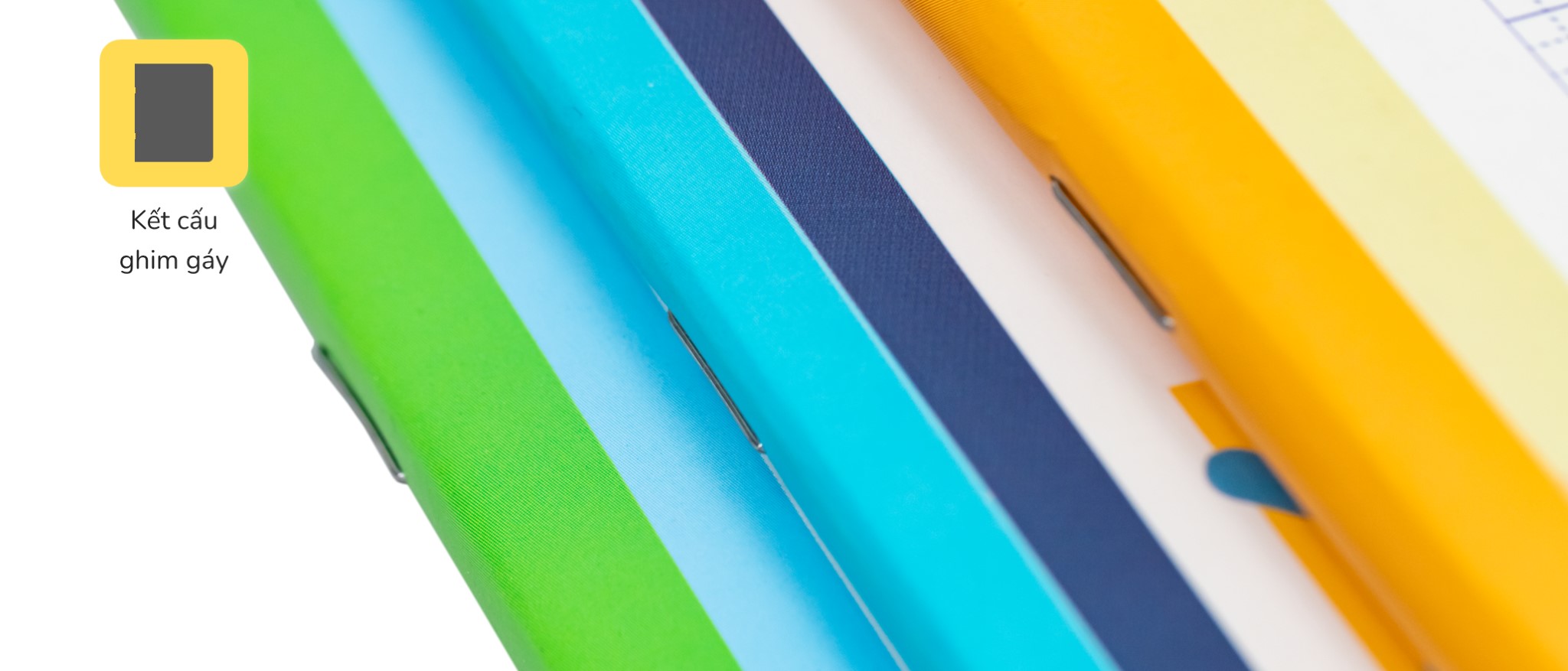 Thiết kế gáy ghim vừa tối ưu sự tinh giản của tổng thể cuốn vở, vừa tiện lợi cho việc ghi chép kiến thức trên trường, lớp.