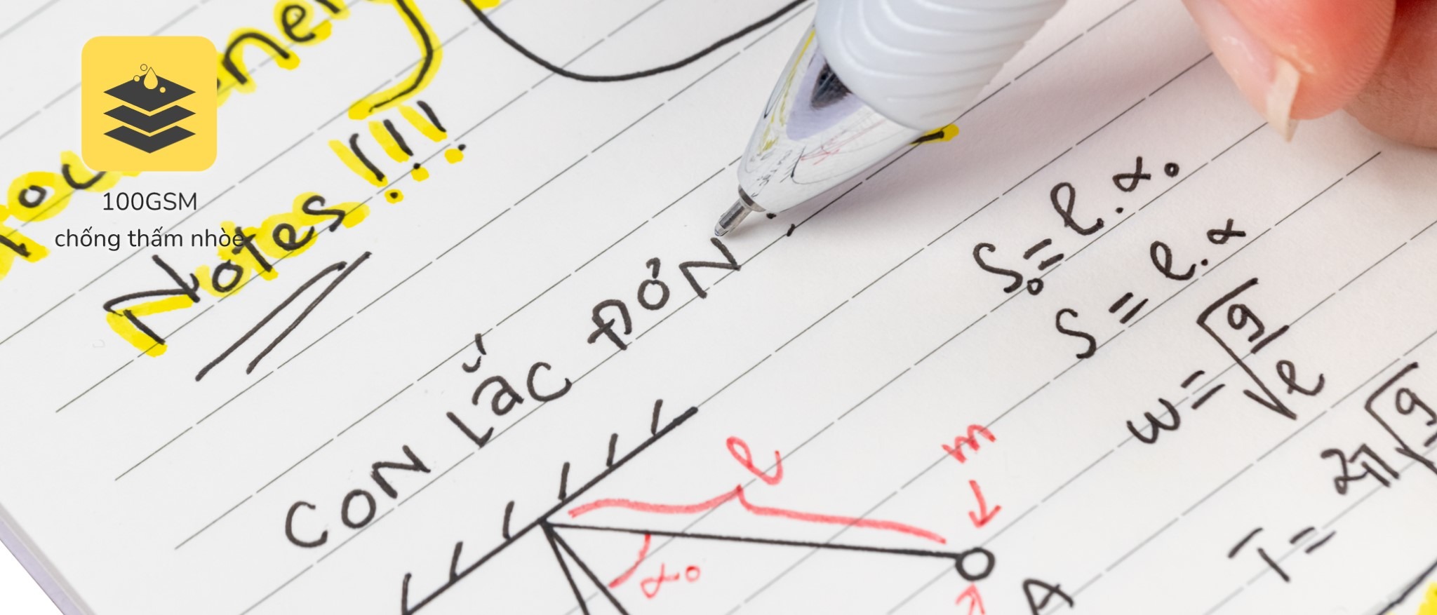 Chất giấy 100GSM chống thấm nhòe hiệu quả cho bạn vô tư dùng các loại bút gel, bút brush nhạt màu, highlight để take note và trang trí, hạn chế lem nhòe và không lo in hằn vết mực sang trang sau.