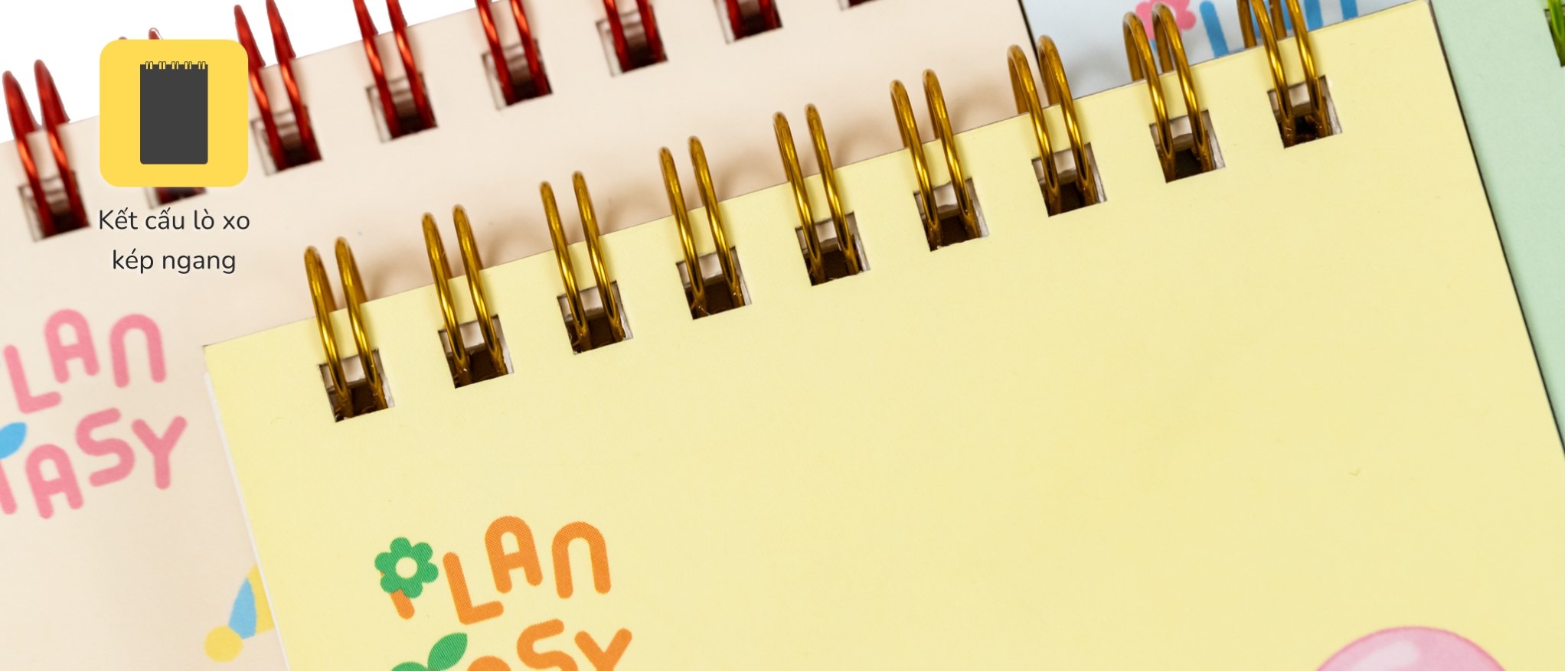Kết cấu lò xo kép ngang lật giở linh hoạt kết hợp bìa bồi dày làm điểm tựa cho bạn take note thoải mái, ghi chú thông tin nhanh ở mọi địa điểm mà không lo bị cộm tay.